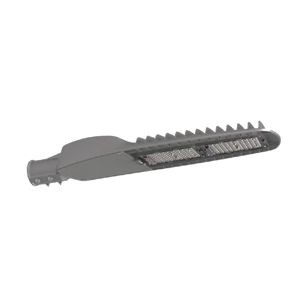 Luminario LED tipo Roadway para uso exterior y alumbrado público, de montaje a poste o como punta de poste mediante su brazo rotable, para aplicaciones como áreas perimetrales, áreas de vialidad, estacionamientos, etc. con un diseño de fácil instalación y libre de mantenimiento, el cual brinda una excelente eficiencia lumínica con una mayor resistencia contra los impactos gracias a su construcción robusta y protección contra el ingreso de polvo y humedad. Cuenta con una uniformidad de salida luminosa con un bajo brillo gracias a su lente de policarbonato claro y con un sistema de configuración de temperatura de color y de potencia, teniendo además un ahorro de hasta el 65% en comparación con tecnologías HID tradicionales.